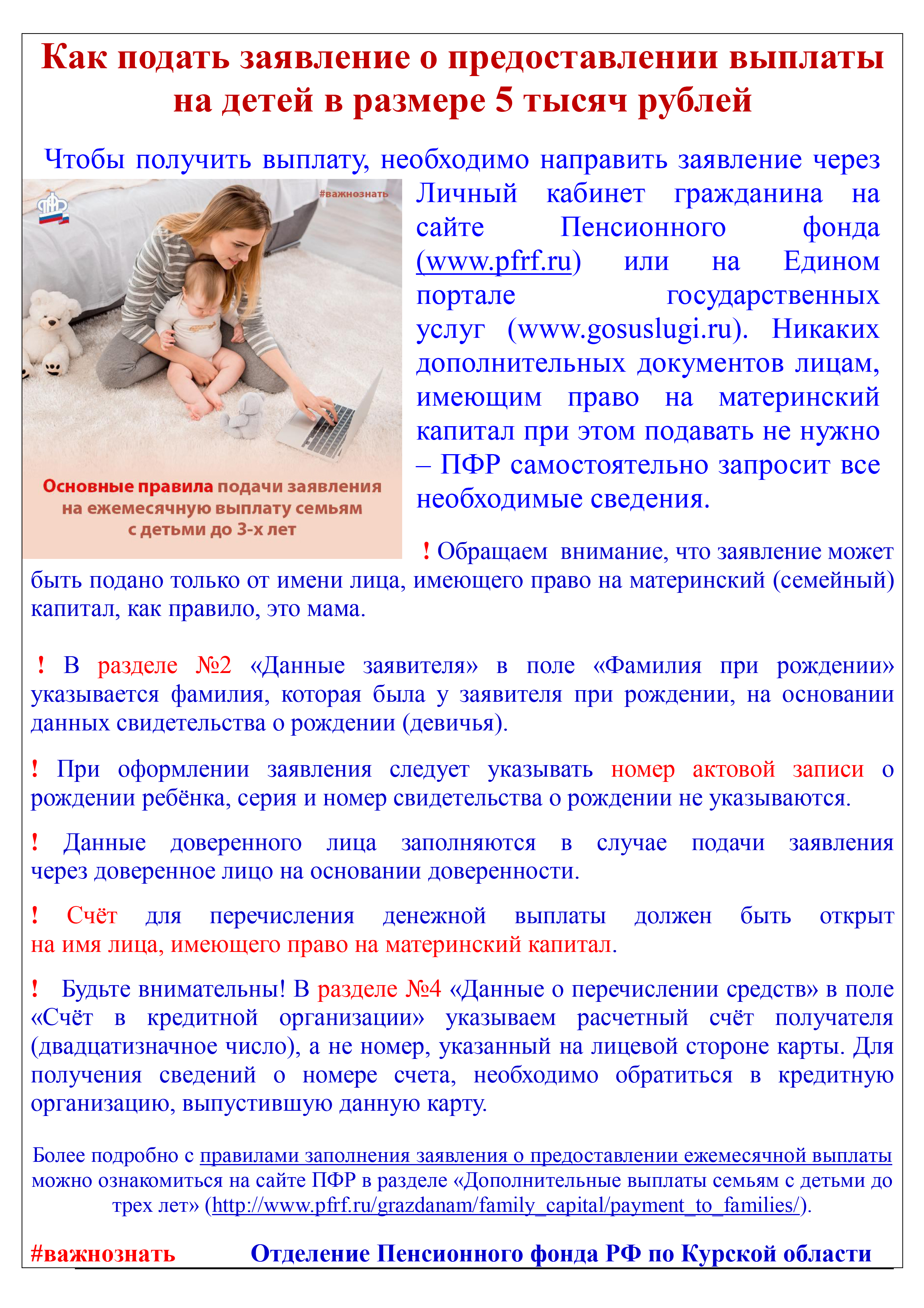 Листовка "Как подать заявление о предоставлении выплаты для детей в размере 5 тысяч рублей "